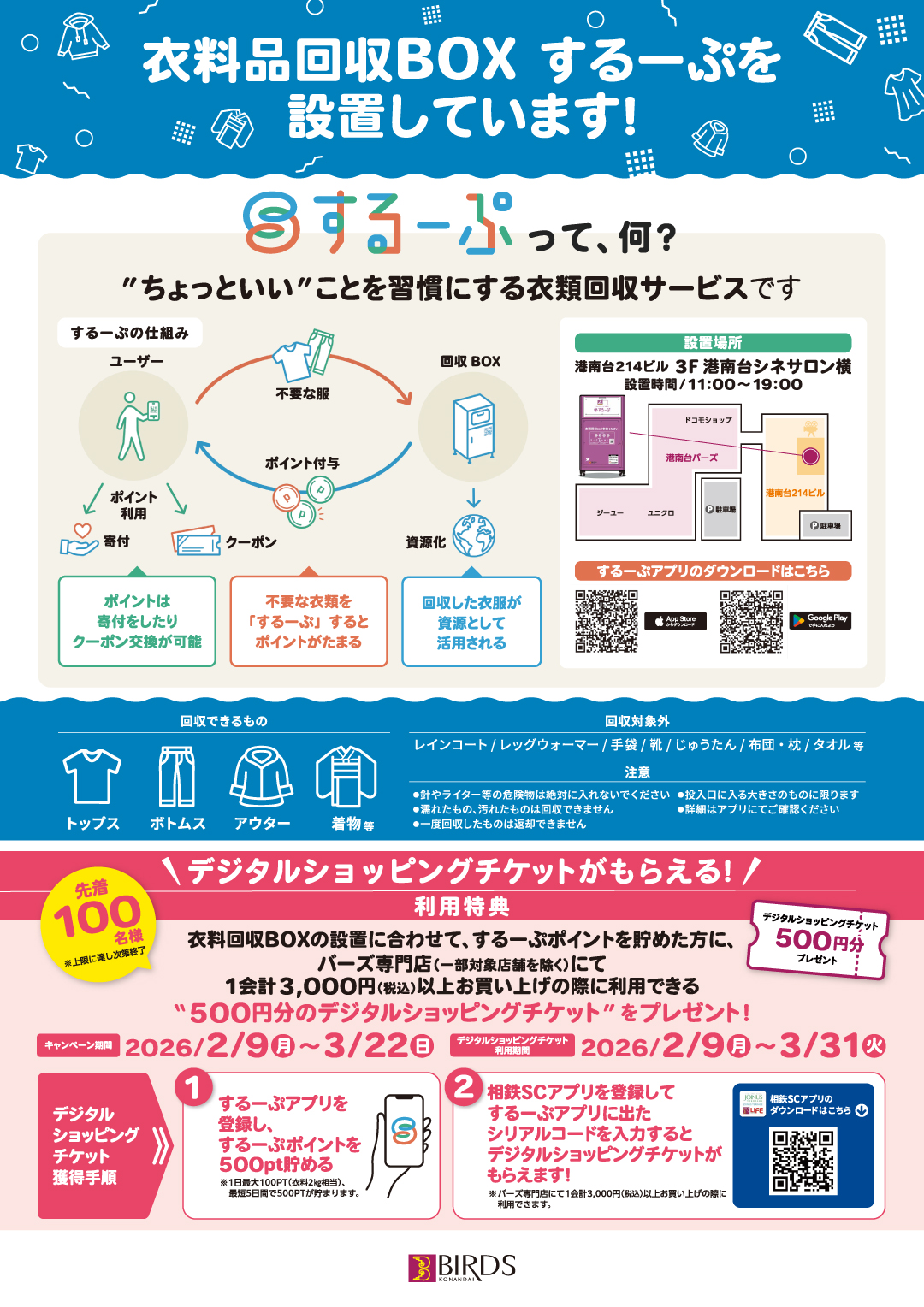 するーぷポイント500Pと港南台バーズのデジタルチケットを期間中に交換して、バーズでお得にお買い物いただけます!