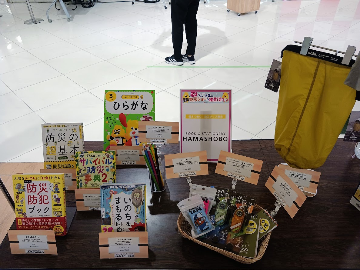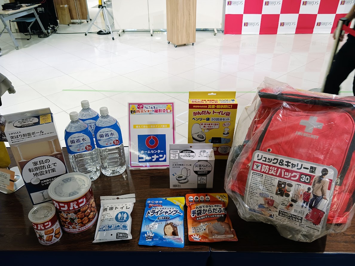 会場では、防災グッズ展示も同時開催!今回の展示をきっかけに、ぜひご家庭でも「もしも」に備えてみてください。