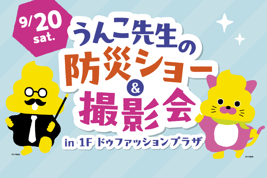 楽しく学べる防災ショーや、うんこ先生とうんこねことの撮影会を開催。