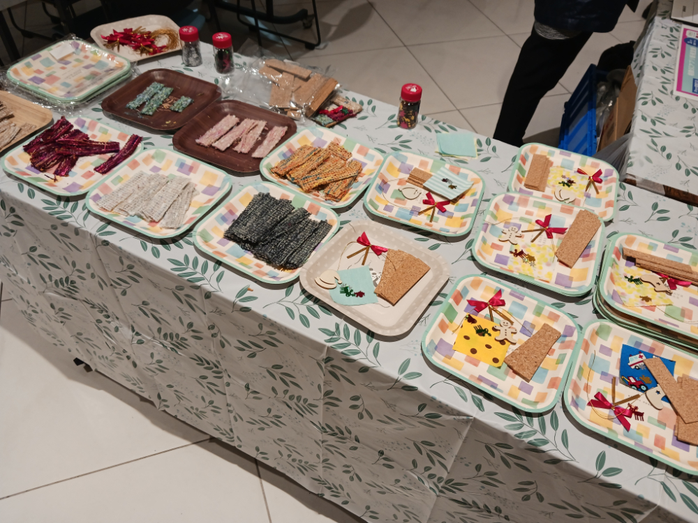 コルクシートの上に生地を貼って、クリスマスにぴったりのエコツイードリースを作ります!