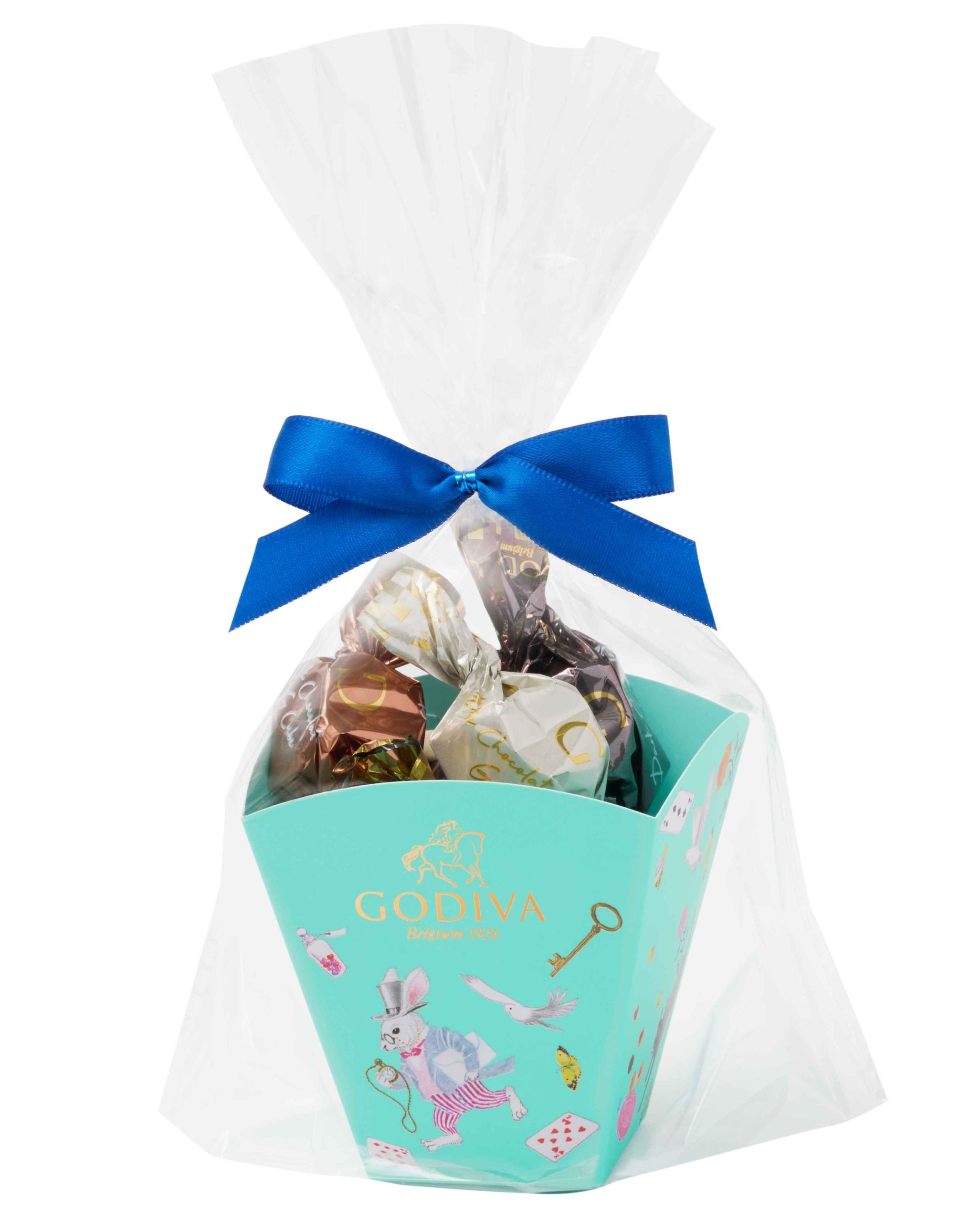 物語のシンボルのトランプやティーセットなどを描いた、小さなブーケのような可愛らしいパッケージに、ミルク、ダーク、2026年バレンタインより新登場のダーク ストラッチャテッラのG キューブ チョコレートを詰め合わせました。
