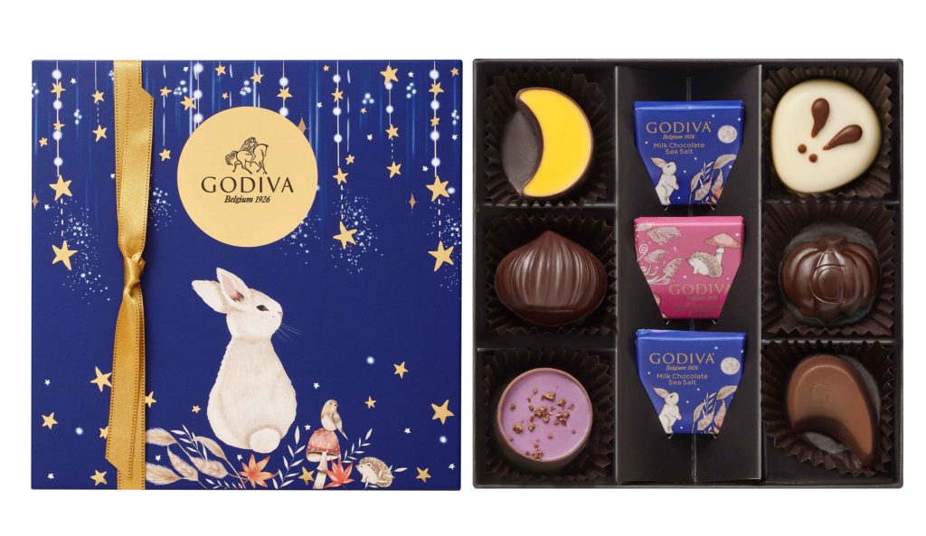 澄んだ夜空に浮かぶ満月を見ながら、秋の夜長をウサギと一緒にチョコレートを楽しみませんか。お月見を楽しむウサギを描いたパッケージは季節のご挨拶の贈り物としてもぴったりです。