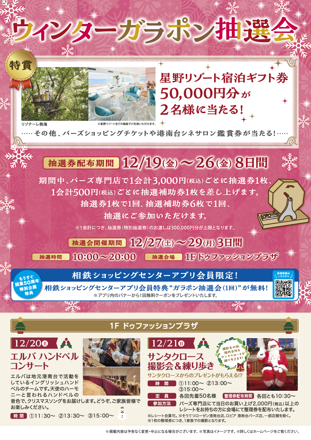 相鉄ショッピングセンターアプリご登録の方にガラポン抽選会が1回無料!
